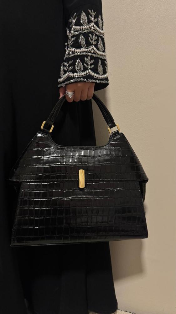 حقيبة يد فاخرة بتصميم لامع كلاسيكي.
